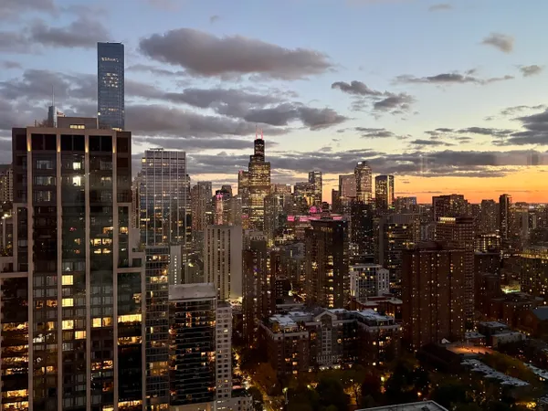 You truly can have it all! Dripping in style and filled with natural light, this freshly painted, move-in ready gem sparkles with site-finished hardwood floors and oversized windows framing dramatic skyline, lake, and sunset views. The reimagined kitchen stuns with espresso cabinetry, granite counters, custom hardware, a raised breakfast bar, and convenient beverage fridge. Perfect for entertaining or relaxing evenings in! The bedroom boasts impressive dimensions and a generous walk-in closet, large enough to host your entire wardrobe. Retreat to the spa-inspired bath, complete with a hard-to-find dual-sink vanity, fogless mirrors, and a frameless shower pre-plumbed for a steam feature. Step onto your private balcony and take it all in...the views, the energy, the beauty of Chicago! Newberry Plaza delivers a true hassle-free lifestyle experience with 24-hour door personnel, on-site management and maintenance, fitness center, outdoor pool, sundeck, conference room, bike and package rooms, and pickup dry cleaning services. HOA fee includes heat, air conditioning, water, garbage, recycling, cable, high-speed internet, gym, and storage (electricity is billed separately). Leased parking is available in the building. Strong reserves and no planned special assessments - the lobby, hallways, and exterior facade were all recently updated. Ideally located in Chicago's iconic Gold Coast neighborhood, this residence puts you at the heart of the city's most sophisticated living with world-class dining, designer boutiques, premier nightlife, and the bustling charm of Mariano Park right outside your front door. Enjoy easy access to Michigan Avenue, the lakefront, public transportation, grocery stores, parks, coffee shops, and more! The building's pet policy only allows cats & service dogs. Schedule your tour today and see for yourself why it's the ultimate place to call home!