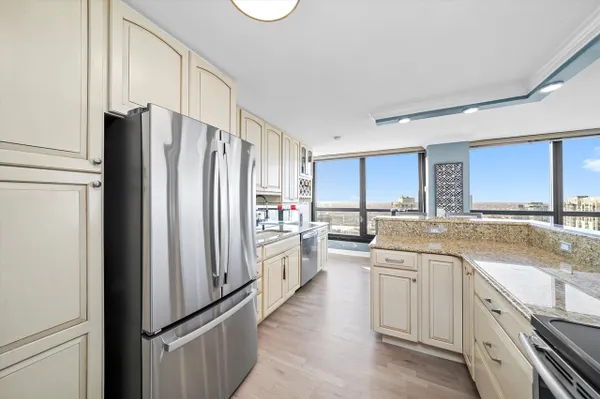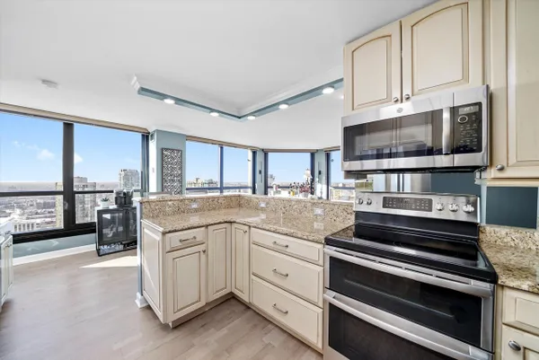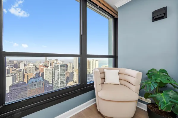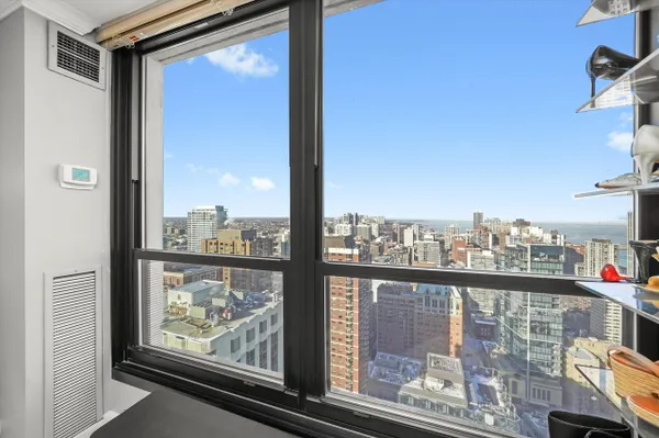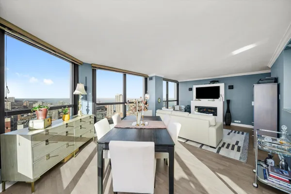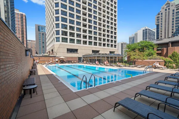 Windows galore! Enjoy stunning northwest panoramic views from this sun-filled 1,000 sq ft corner unit featuring 1 spacious bedroom and 2 full baths. Beautifully updated throughout with gorgeous hardwood floors and a Bosch in-unit washer and dryer. Step out onto your private balcony and take in the views. Located in a solid, full-amenity building offering a 24-hour doorman, outdoor pool, exercise room, dry cleaner, and bike room. Convenient storage cage just steps from the unit. Assessments include everything except electric. Newberry Plaza is a luxury, full-service high-rise renowned for its incredible views and unbeatable location. Walk to Rush Street favorites including Gibsons, Hugo's, and Carmine's, as well as Oak Street Beach, the Lakefront Trail, Oak Street and Michigan Avenue shopping, coffee shops, gyms, and everyday conveniences. Easy access to CTA Red Line trains, multiple bus routes, and rideshare options. Make it yours today! Explore the property in 3D-click the 3D button to take a virtual tour and experience every detail.